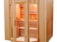 Double luminaire intérieur, poêle Harvia, seau et louche traditionnels en bois, thermomètre, système de bouclage "FastUp", sablier traditionnel